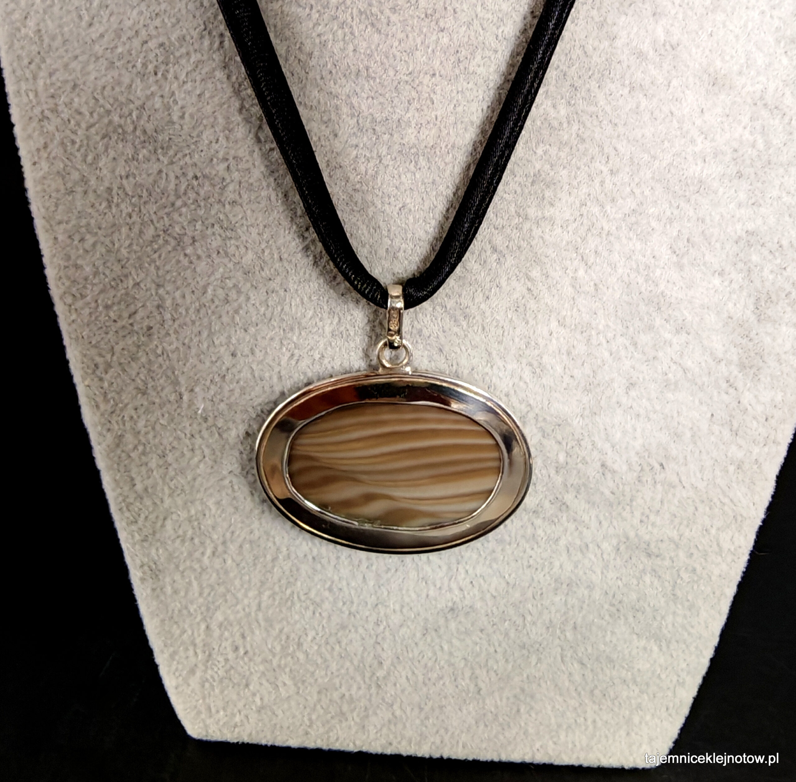 Wisior z krzemieniem pasiastym  w oprawie ze srebra 925. Ręcznie wykonany z najwyższej jakości materiałów.
