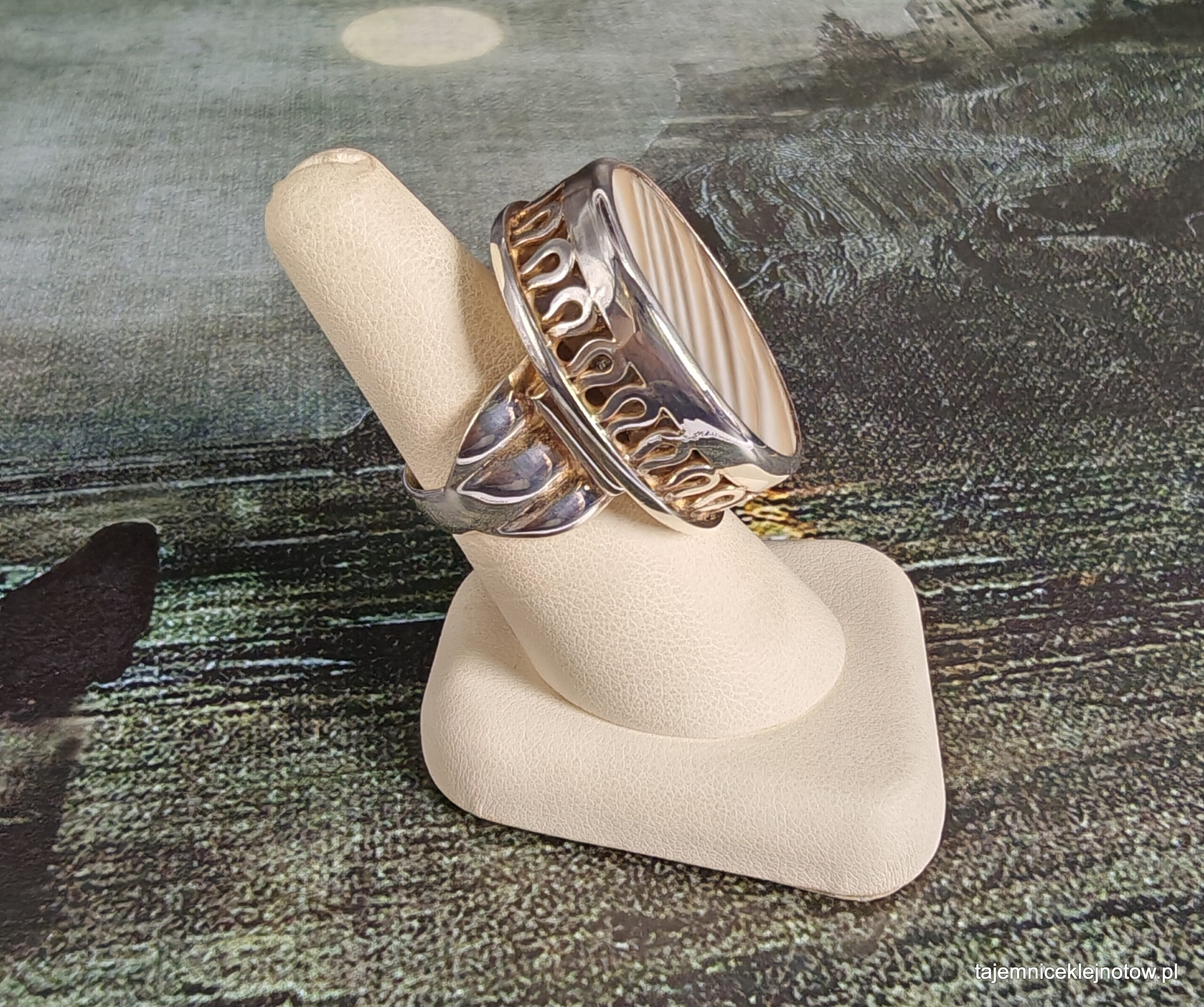 Pierścień srebrny z krzemieniem pasiastym to autorski projekt naszej pracowni, wyrób w pojedynczym egzemplarzu.